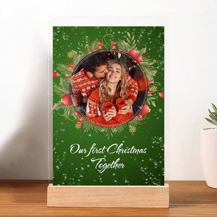 Sărbătoriți primul Crăciun împreună cu această plachetă foto personalizată, care transformă amintirile în opere de artă.