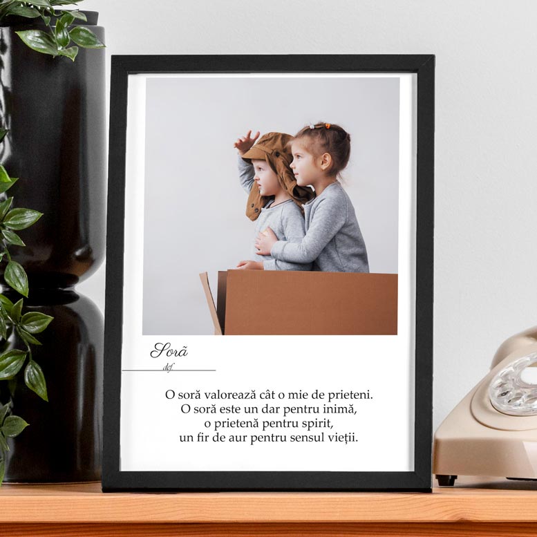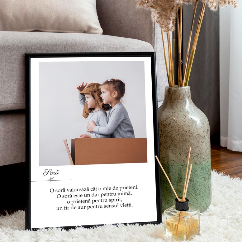 Oferă un Tablou cu poza si mesaj definitie-Sora cu care îi vei surprinde pe cei dragi și oferii emotie și bucurie.