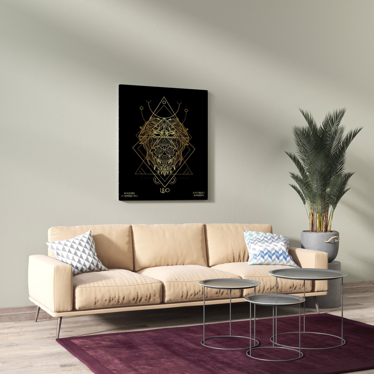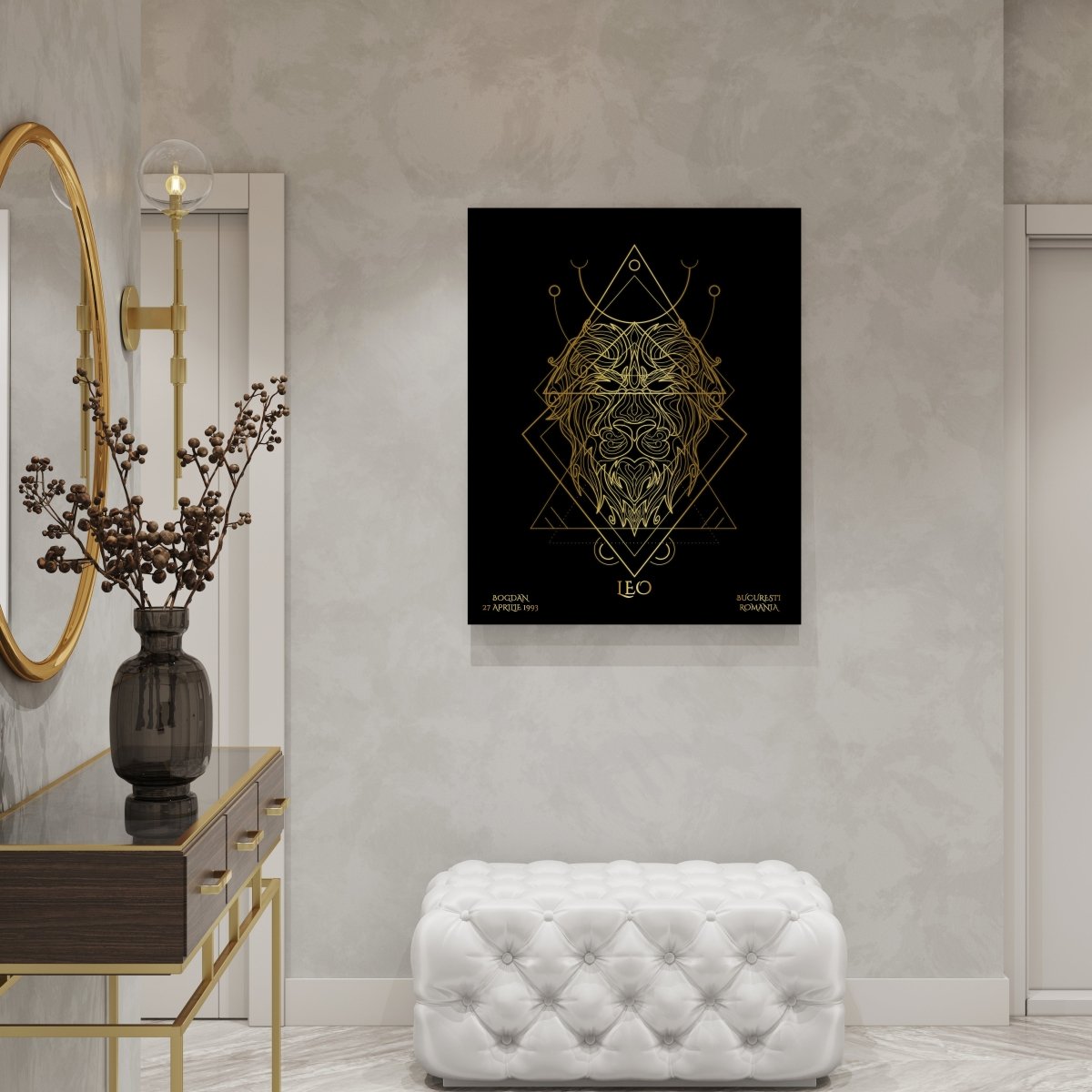 Această artă astrologică unică are elemente în stil luxury de culoare negru / auriu.