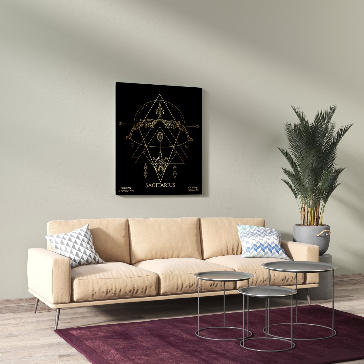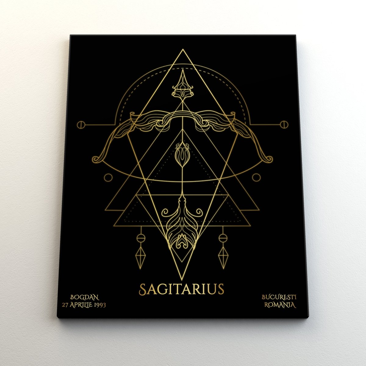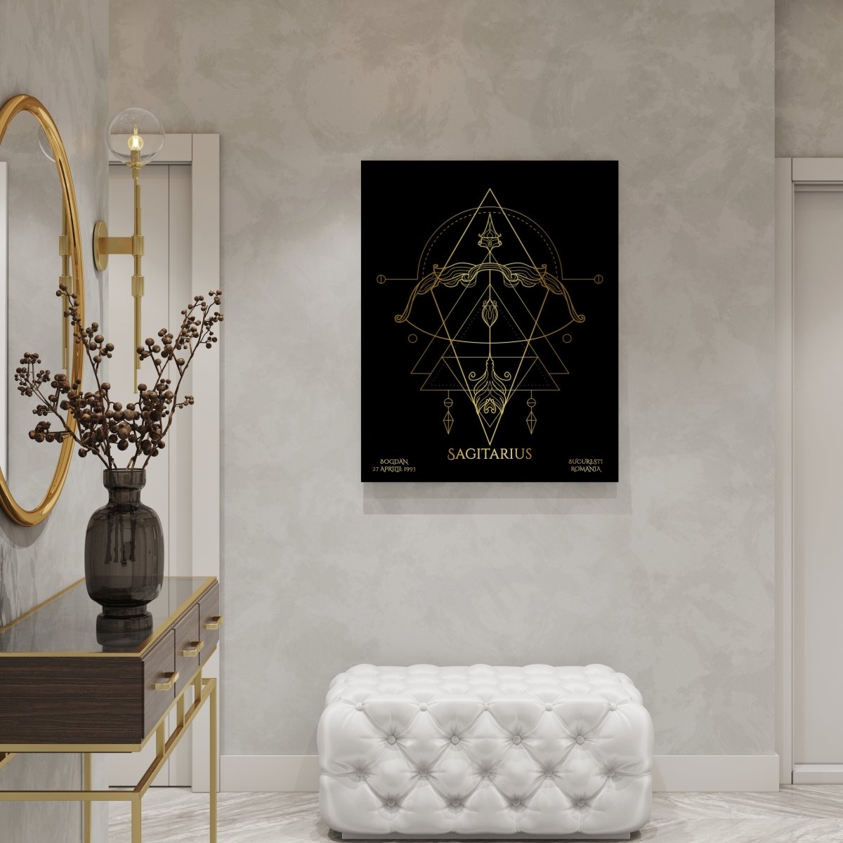 Această artă astrologică unică are elemente în stil luxury de culoare negru / auriu.