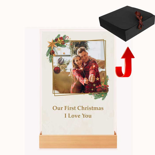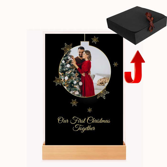Plachetă foto personalizată de sărbători – Primul nostru Crăciun împreună – Cadou personalizat pentru cupluri